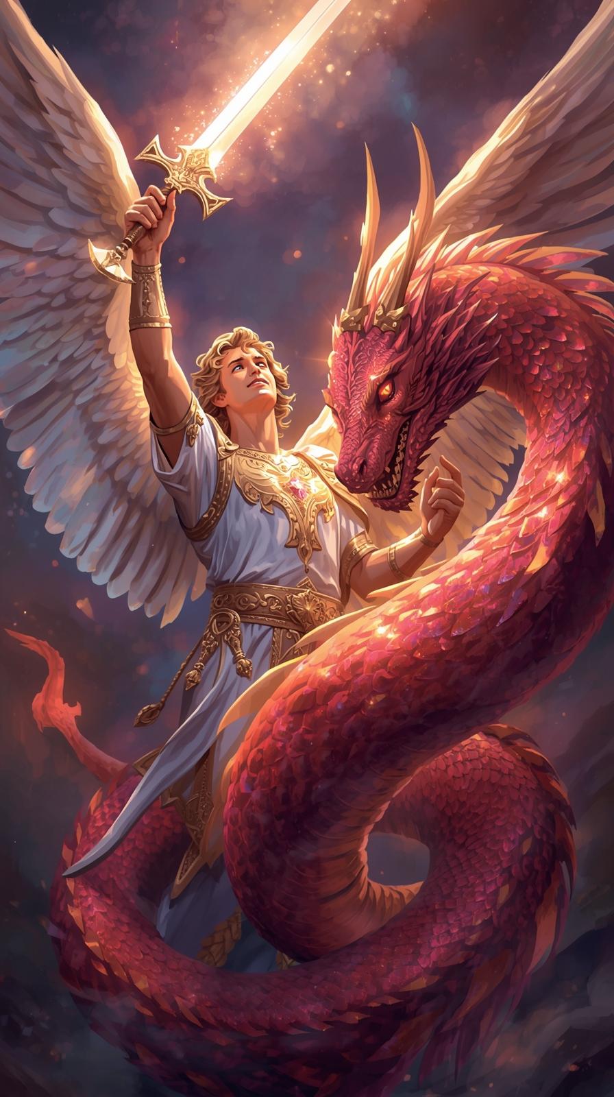 - Maîtrise de l’esprit sur la matière : Plutôt que de « tuer le dragon », Michael le maîtrise. Cela symbolise la sublimation des forces instinctives (le serpent ou dragon de la Kundalini) par l’élévation consciente, non la répression.