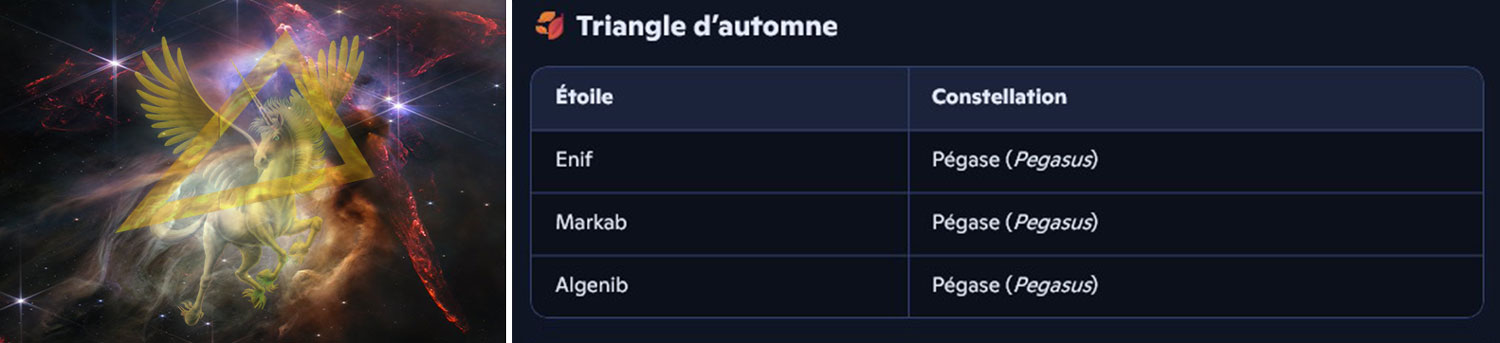 Activer les 3 constellations et les 3 étoiles principales de l’astérisme du triangle d’automne.