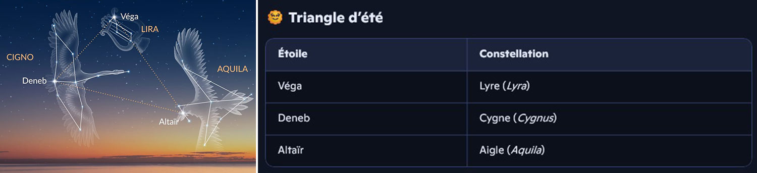 Activer les 3 constellations et les 3 étoiles principales de l’astérisme du triangle d’été.